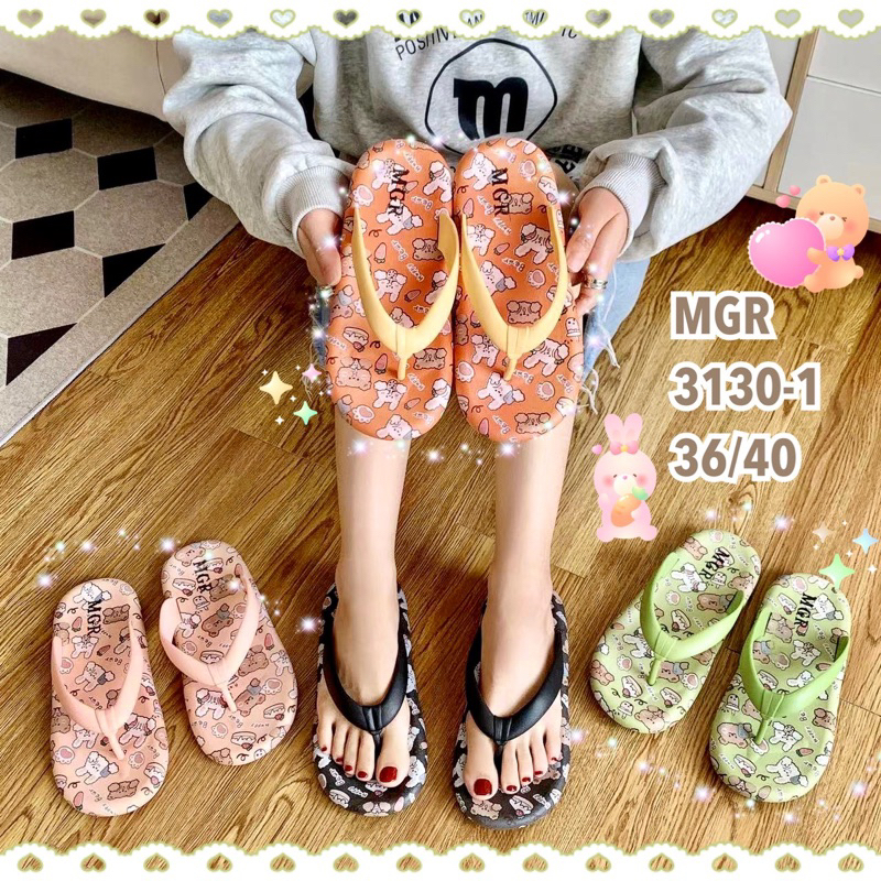 Sandal Jepit Karet Jelly Anak wanita Cewek motif Bear Bunny Rabbit Cute Imut Lucu Impor MGR Mokaya Balance (2202/3130-1)