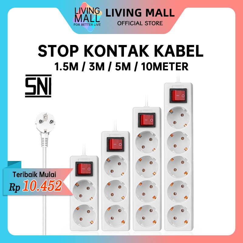 STOP KONTAK KABEL 1.5/3/5 /10METER 2/3/4/5 LUBANG BER-SNI