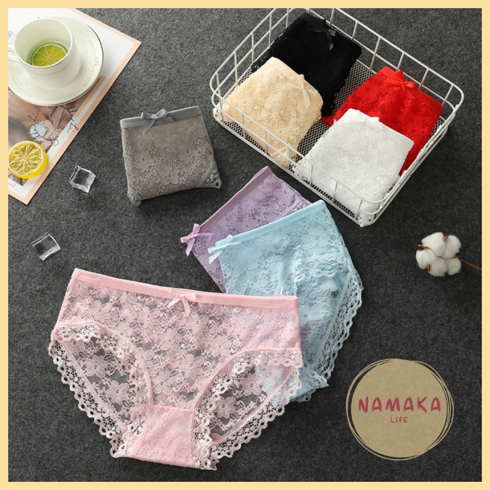 CD WANITA LUCU SEXY IMUT SEMI TRANSPARAN TEMBUS LAPIS KATUN LACE RENDA-RENDA JARING CELANA DALEM DALAM DALEMAN KOLOR CEWEK CWE 357