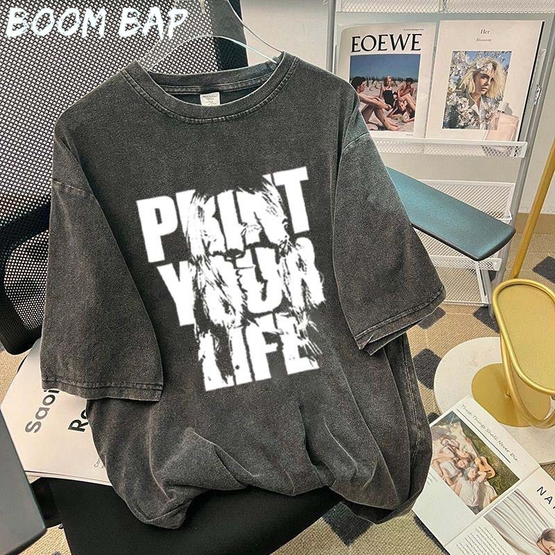 BOOMBAP American retro Style T-shirt Oversize Putar huruf Print top| Kaos Wanita Cream | Kaos pria dan wanita | Street S