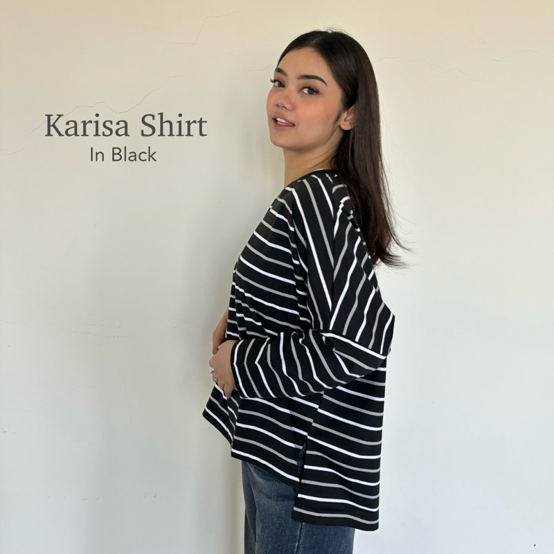 PLUMFIT Kaos Wanita Oversize Motif Garis Matterial Cotton Combed Karisa Shirt