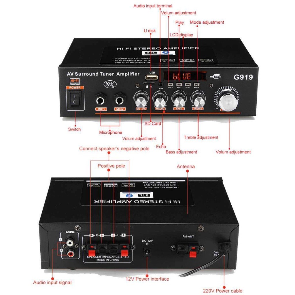 Stok SiapBluetooth Audio Amplifier G919H Home Theater Fm 1000W Ori Power Audio Sound System Ampli