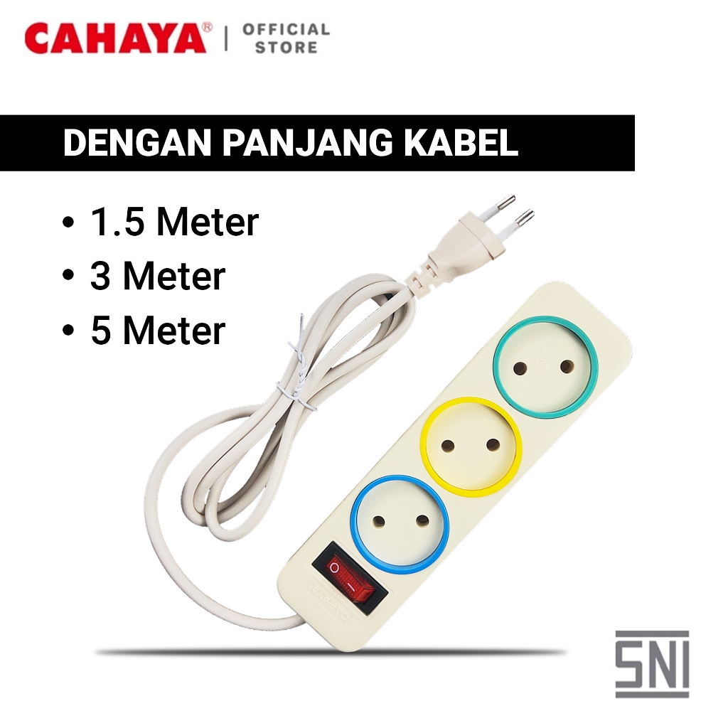 Stop Kontak Gepeng ColorFull ON/OFF / Stop Kontak + Kabel 2/3/4/5 Lubang SNI / Merek Cahaya SC-852/3/4/5