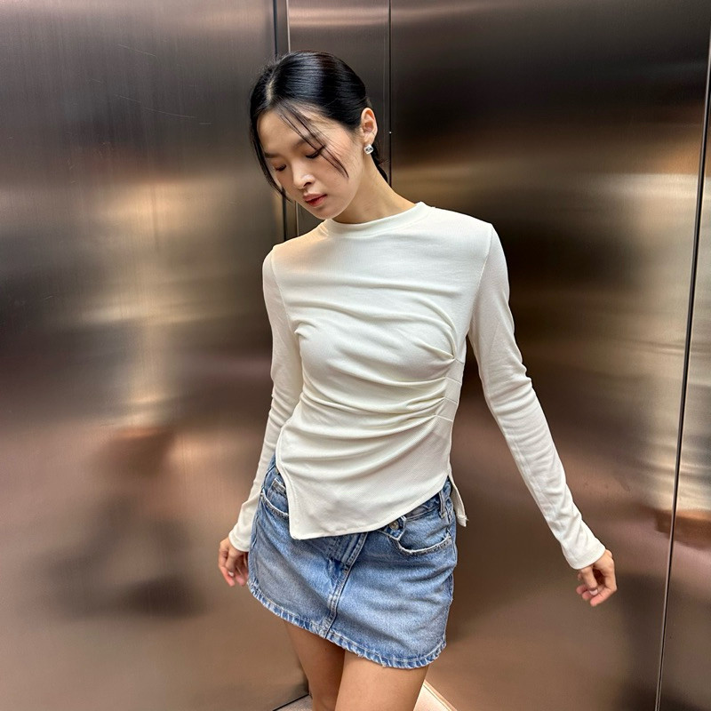 JUBE TOP - Atasan Basic Long Sleeves Blouse Baju Lengan Panjang Wanita Korea Rajut Rib Knit Murah