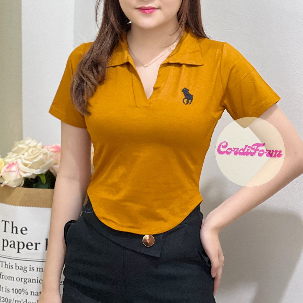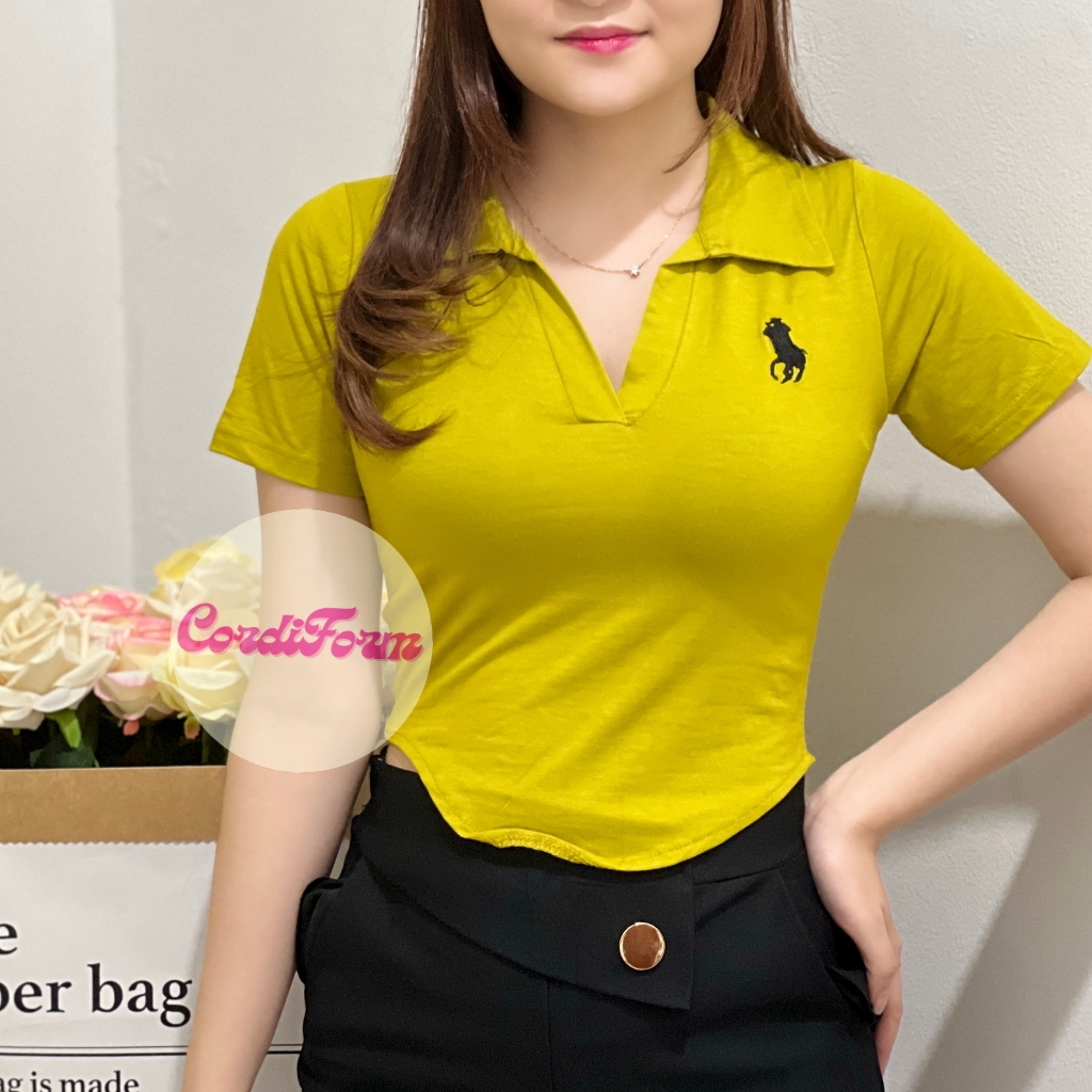 Crop Top Embroidery Oval Lengan Pendek / Atasan Wanita Bordir Kerah V #70
