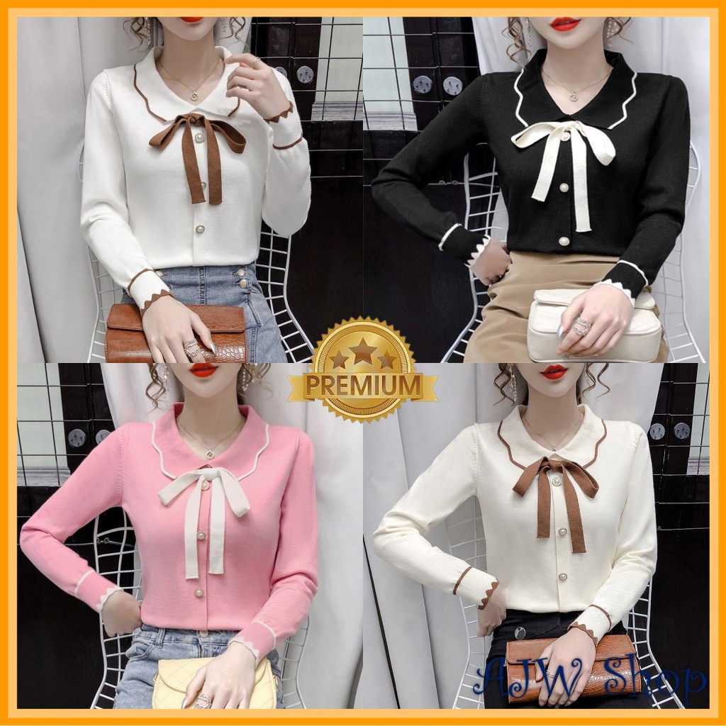 AJW Blouse Wanita Korea Lengan Panjang Rajut Premium XZ | Blouse Korean Style Wanita Rajut Lengan Panjang Premium | Blou
