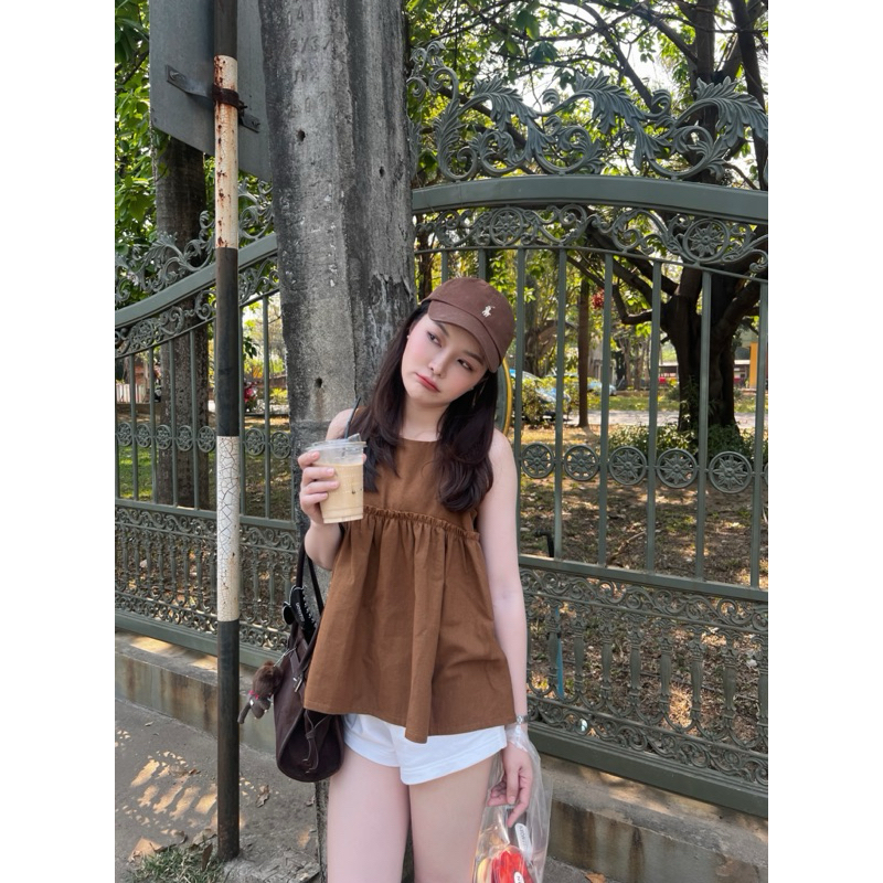 GAURY LINEN TOP TANK TOP BLOUSE ATASAN WANITA KOREA STYLE