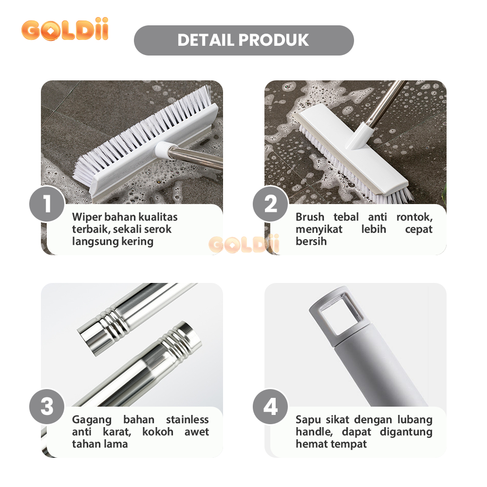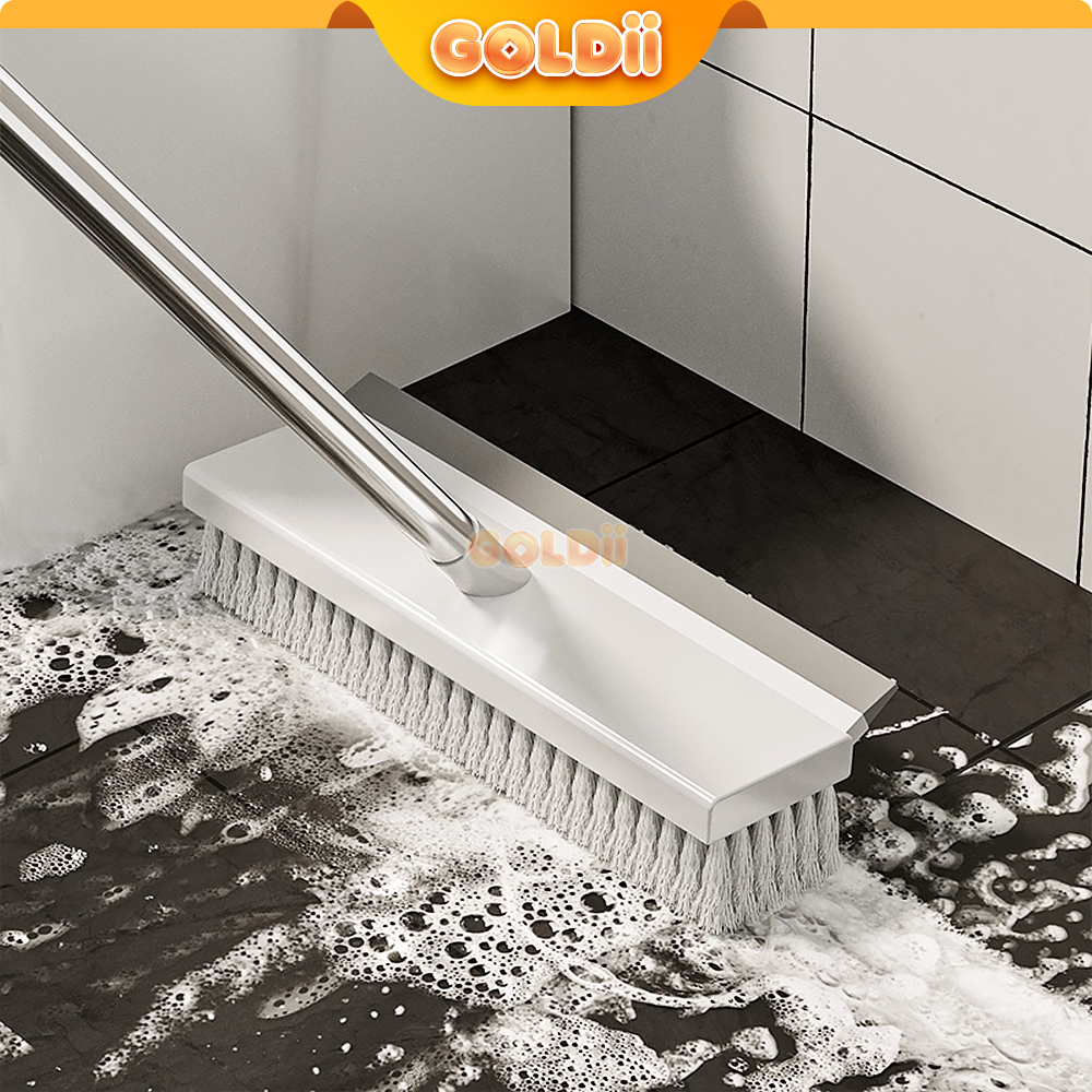 Sikat Pembersih Lantai Toilet Kamar Mandi 2 in 1 Praktis Serbaguna Serokan Air Gagang Panjang Warna Putih