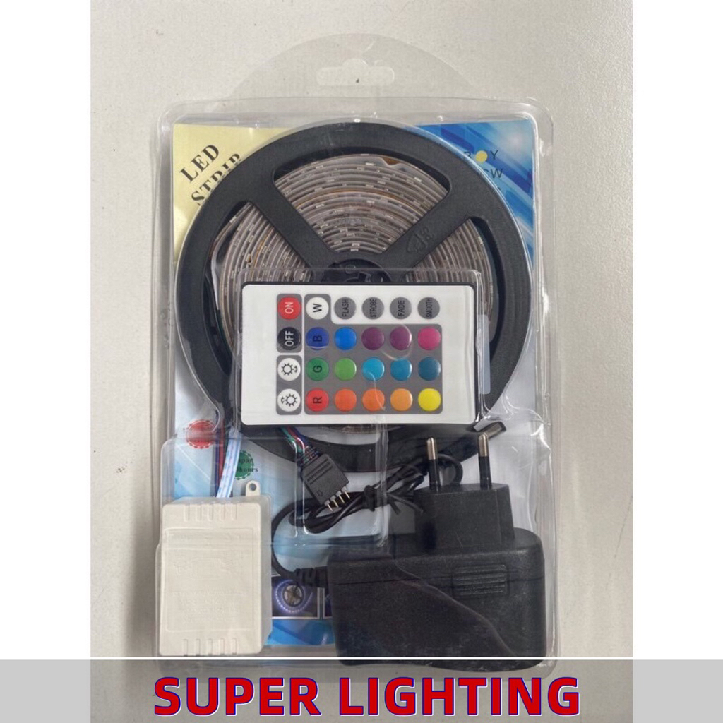 LAMPU LED STRIP 3528 2835 RGB WATERPROOF WARNA WARNI IP44 5M AC 220V + ADAPTOR + REMOTE 3528