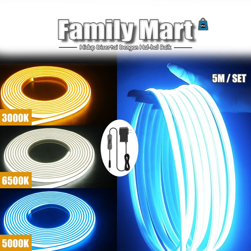 Family Mart Lampu LED Strip Neon/Lampu LED STRIP COB SELANG 5METER/LED STRIP WARNA-WARNI/220V OUTDOOR