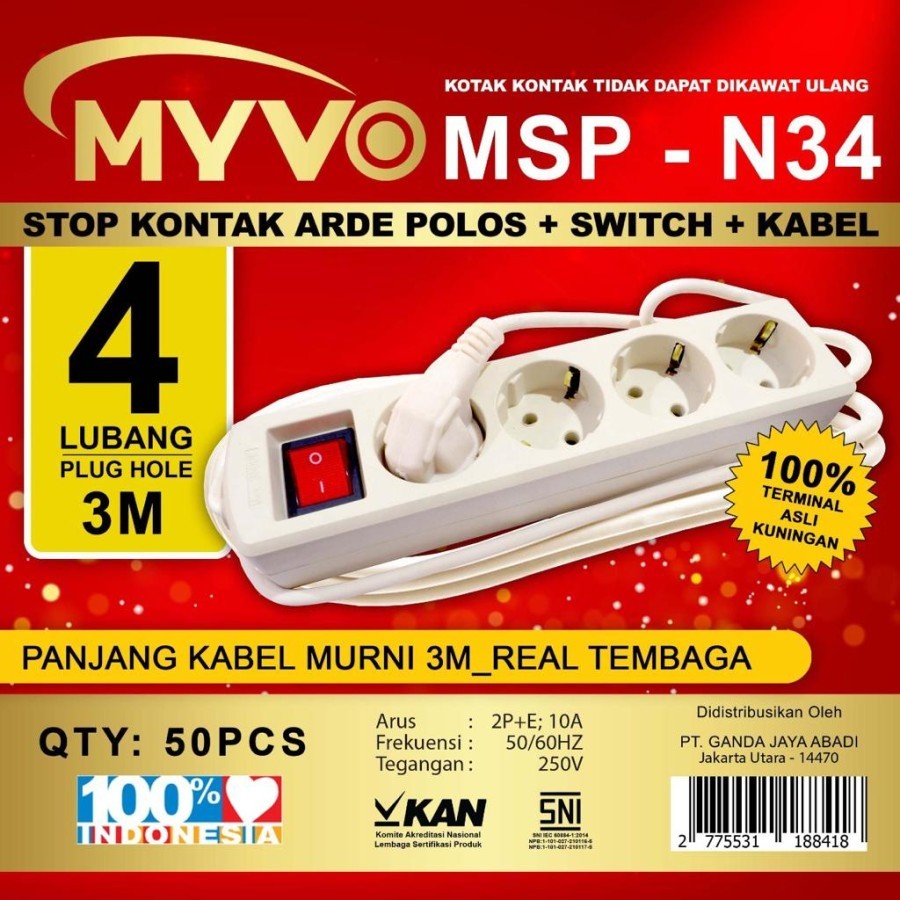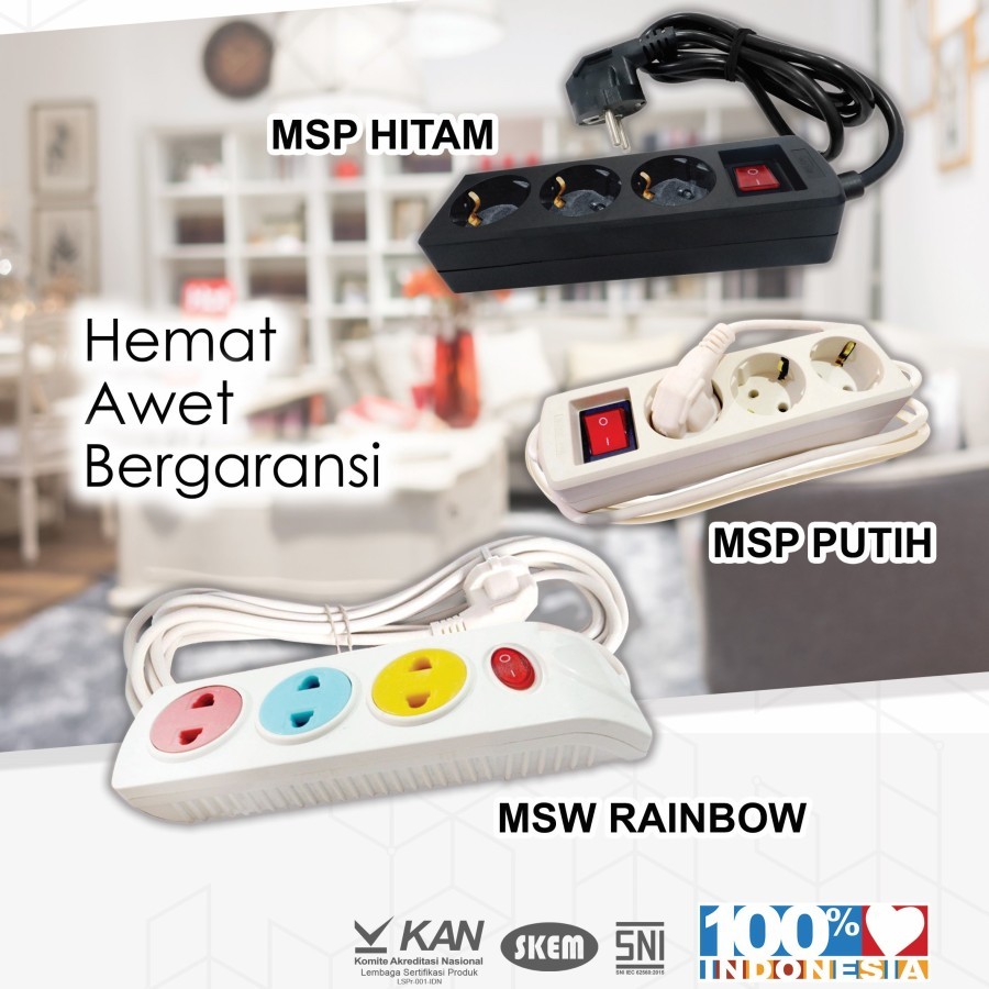 Stop Kontak 4 Lubang 3 Meter MSP-N34 Putih Asli Kuningan