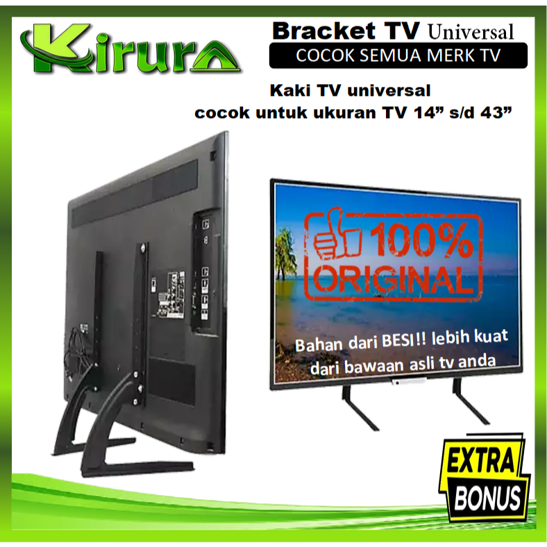 FREE HDMI Bracket Kaki TV LED LCD & Monitor PC universal 14" s/d 43" Bahan FULL BESI PADAT