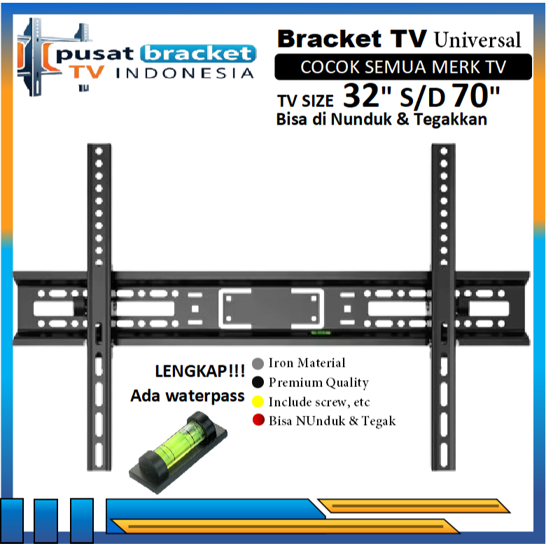 FREE HDMI Bracket TV 32" s/d 70" Universal size (70 65 60 55 50 43 42 40 32 24 21) Import Quality