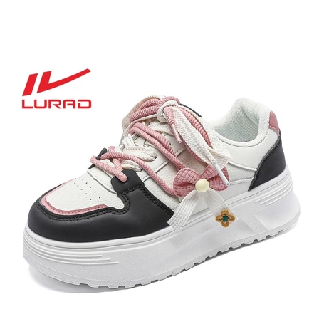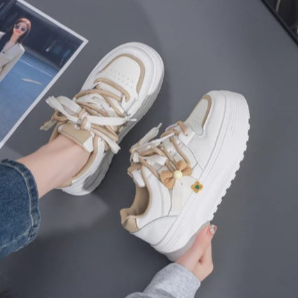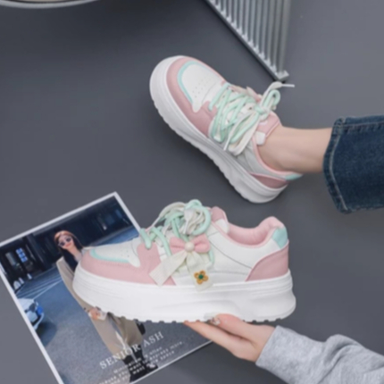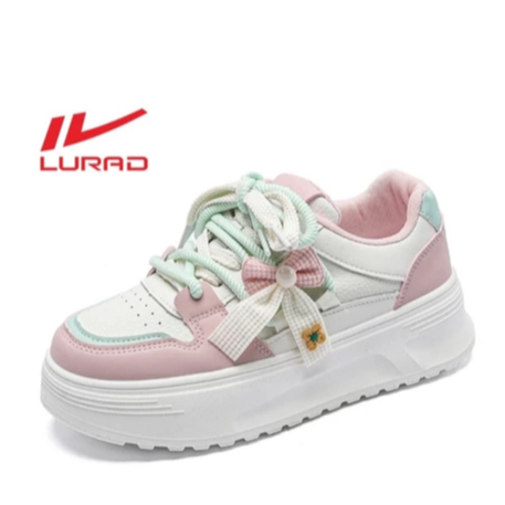 Q551 Sepatu Wanita Sol Tebal Model Unik Sneakers Cewek Tinggi Hiasan Pita Warna Soft Cantik LURAD