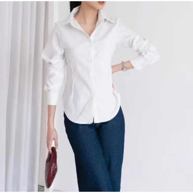 NETTO -Luna Stripe Long Sleeve - Kemeja Fitted Wanita - Atasan Lengan Panjang