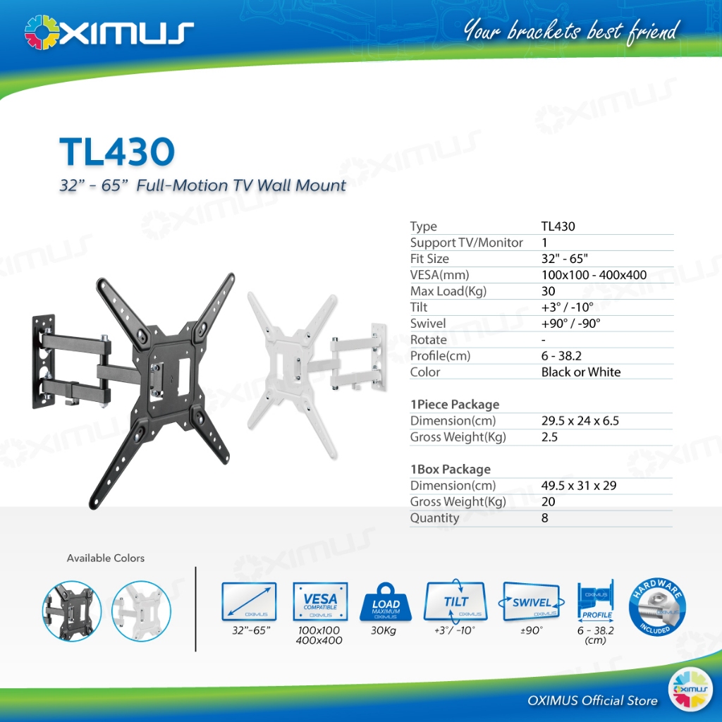 BRACKET TV LED LCD MONITOR 32" - 65" OXIMUS TL430 FULL- MOTION TV WALL MOUNT