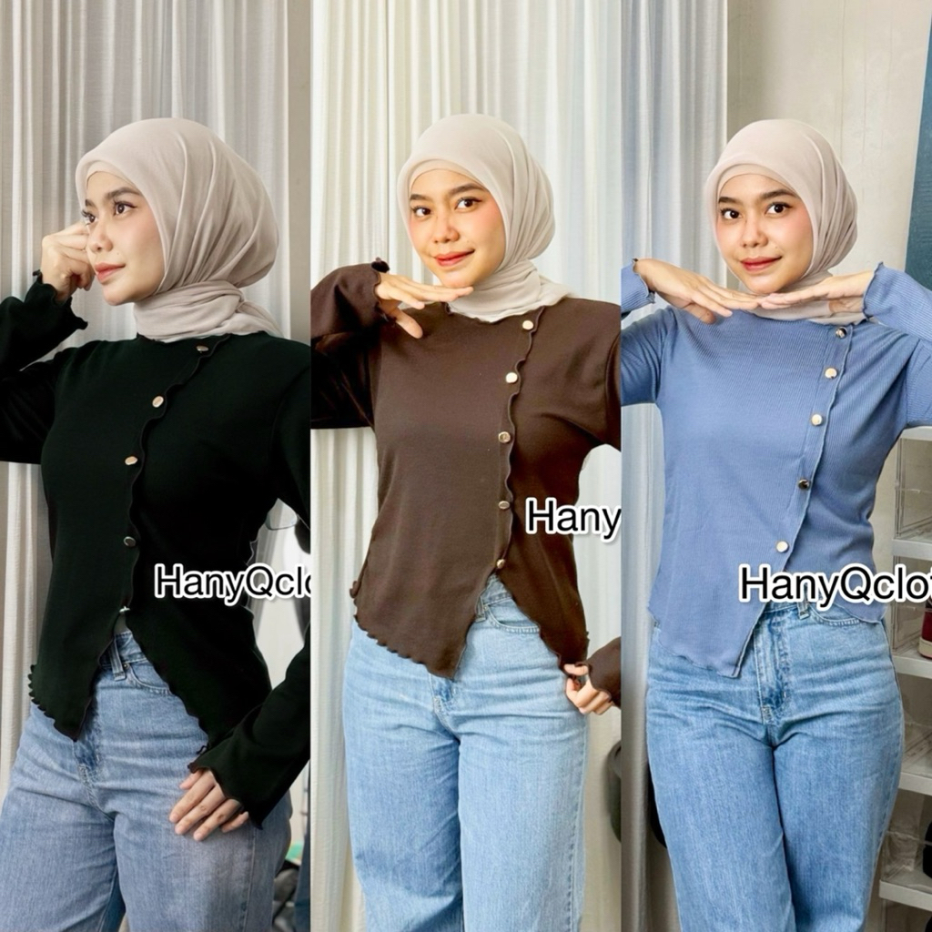 (3pcs 100rb)Promo hemat paket bundling atasan wanita viral Knit kriwil kancing button long sleave bestseller