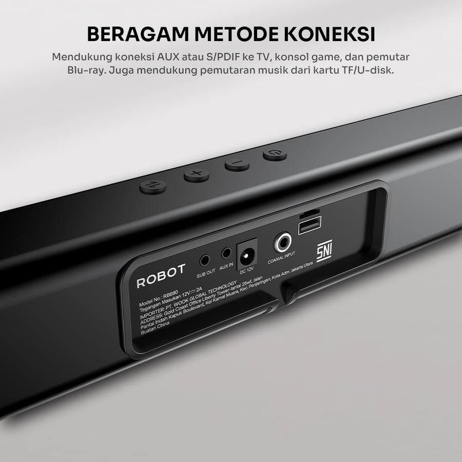 ROBOT RB690 Soundbar Speaker + Subwoofer Home Theater 30W Bluetooth 5.4 TV PC Aux 3.5mm Coaxial Micro SD - Garansi Resmi