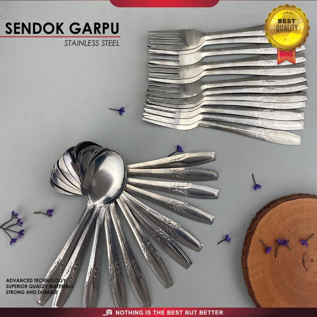 [12 PCS] SENDOK MAKAN STAINLESS SPOON FORK / GARPU ANTI KARAT ISI 12 PCS 1 LUSIN SENDOK BUNGA SENDOK BATIK MURAH MER