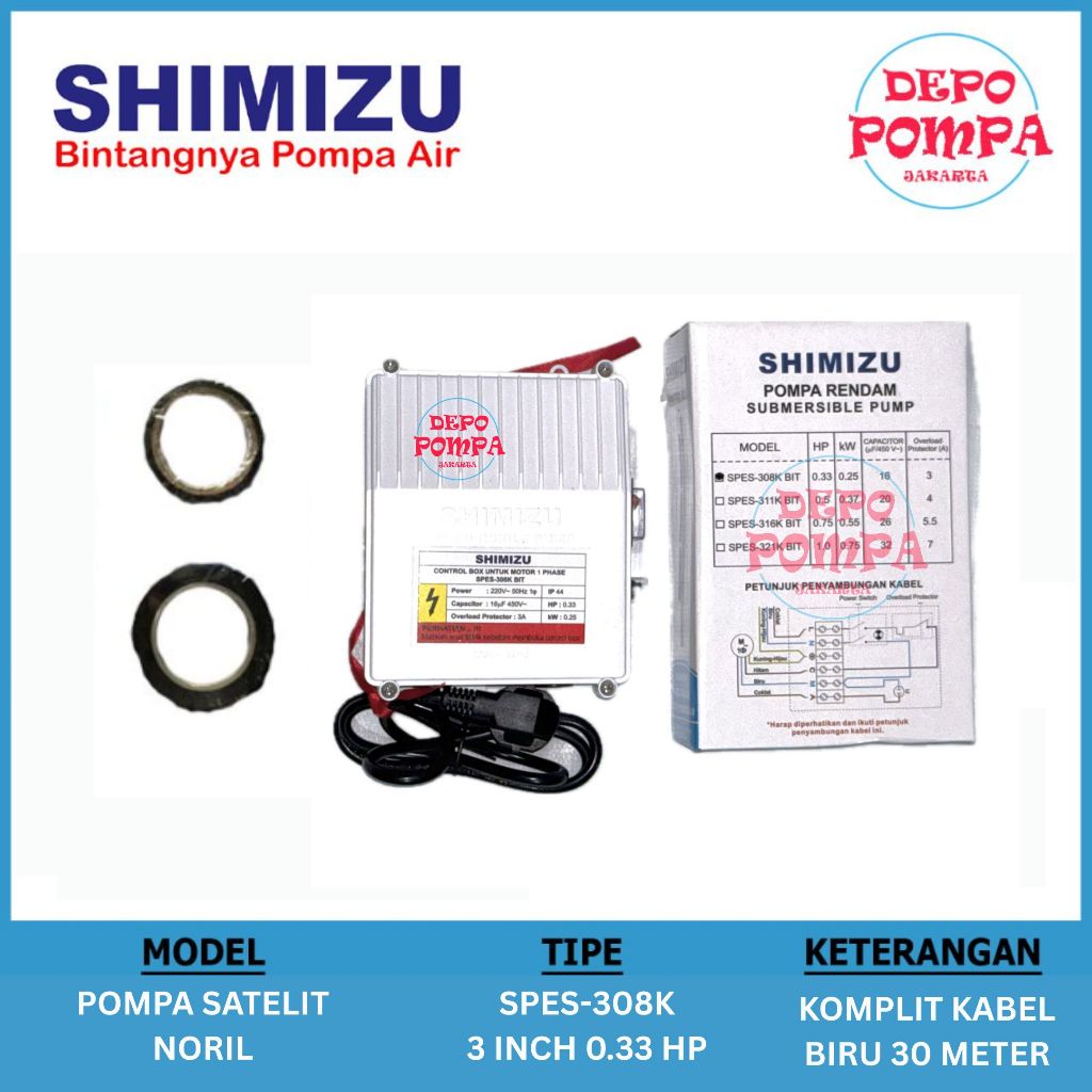 Pompa Air Satelit SHIMIZU 3 INCH 0.33 HP ECO SERIES KOMPLIT KABEL BIRU ASLI