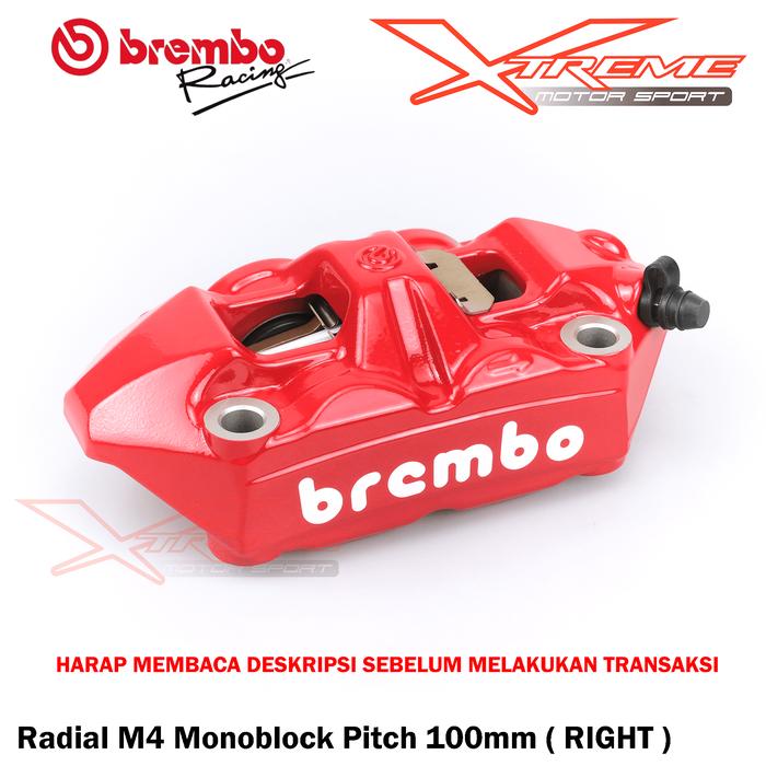 TERLARIS KALIPER BREMBO RADIAL MONOBLOCK M4 100 MM SEBELAH KANAN ONLY ORIGINAL BREMBO ITALY RED WHITE