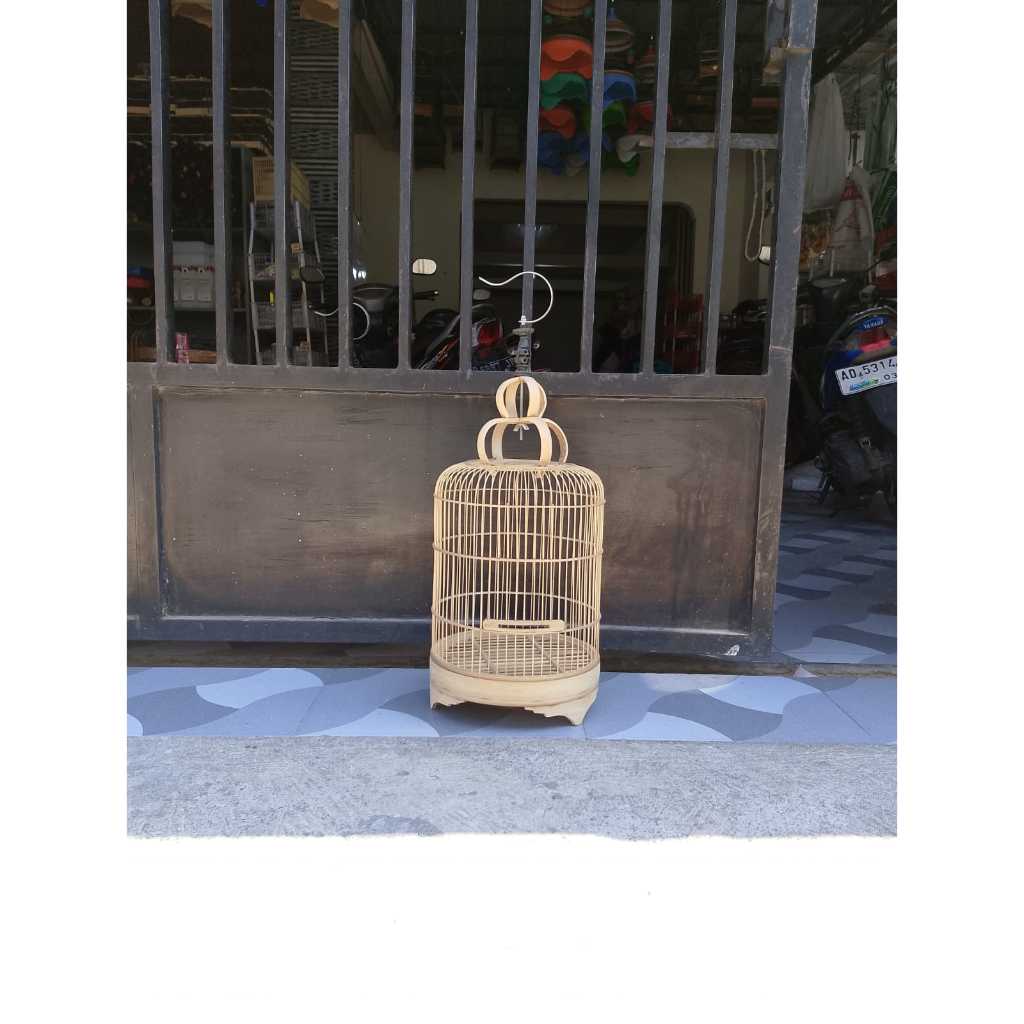 SANGKAR CUNGKOK BULAT MATANG SANGKAR KECIL BURUNG PLECI GLATIK FULL BAMBU LENGKAP GANTUNGAN