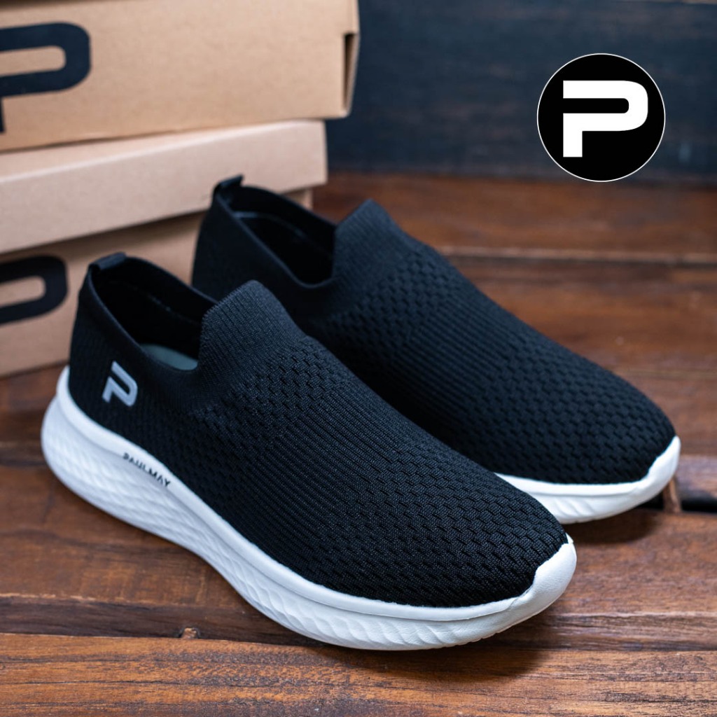 PAULMAY - Sepatu Slip On Running Pria Go Walk - Black White