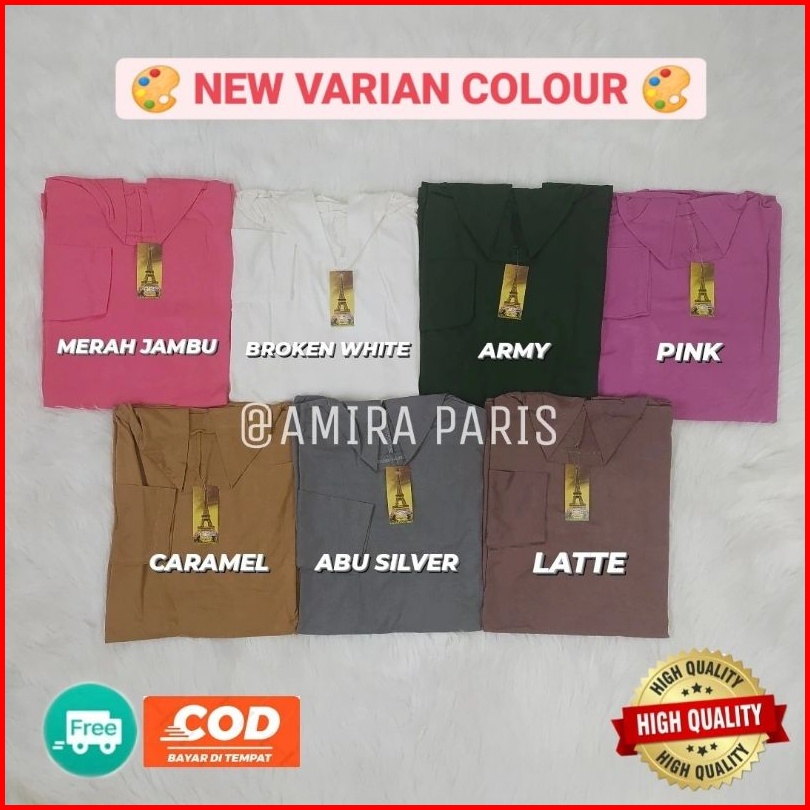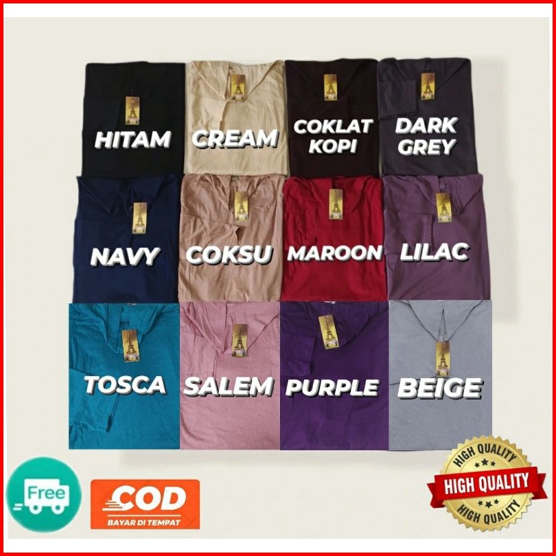 Hitam, Navy, Lilac, Maroon, Coksu, Coklat Kopi, Dark Grey, Abu Muda, Cream, SAGE GREEN, Salem, Purple, Army, Abu Silver, Latte, Pink, Merah Jambu, Putih, Caramel, Mustard, SKY BLUE, BURGUNDY