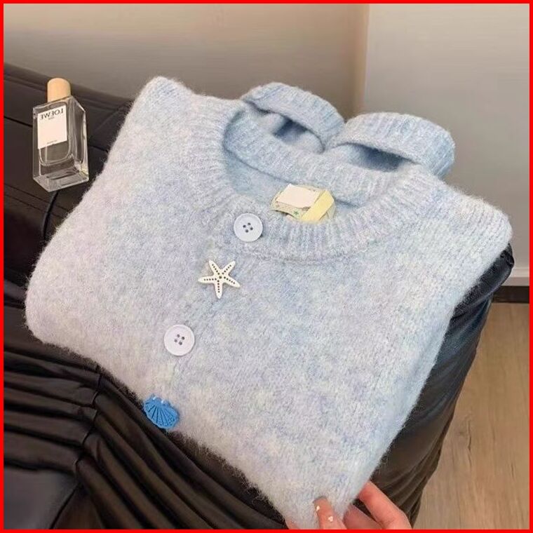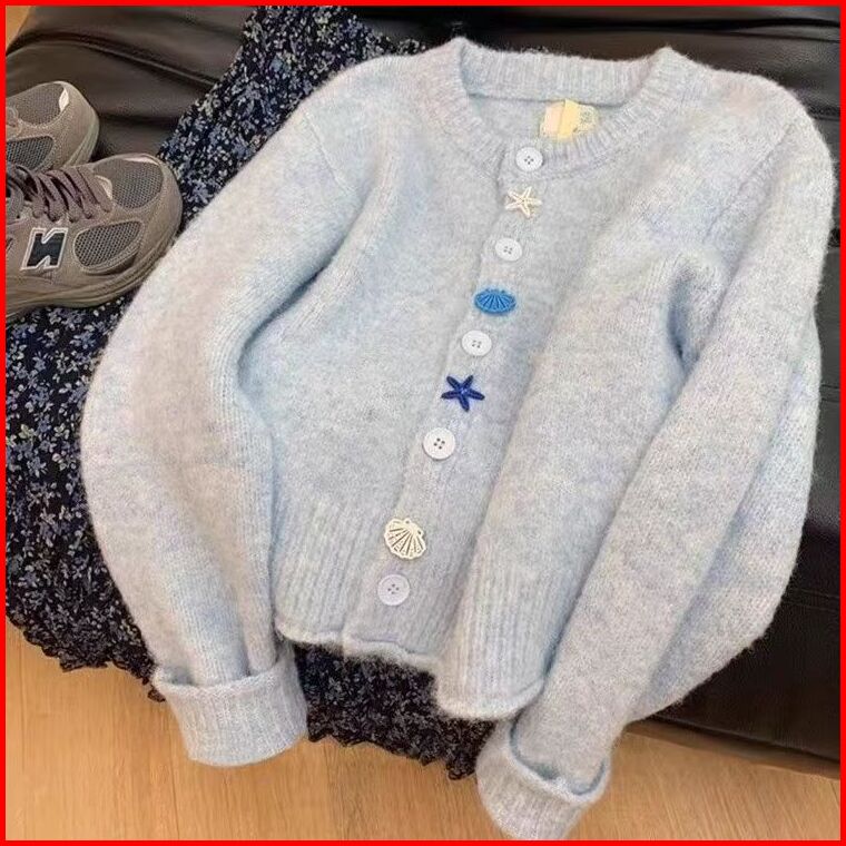Cardigan Jumper Biru Yang Baru Berkancing Lengan Panjang Lucu Dan Lembut Tops Wanita