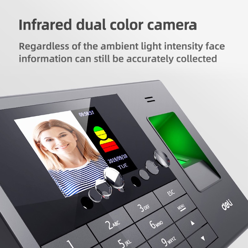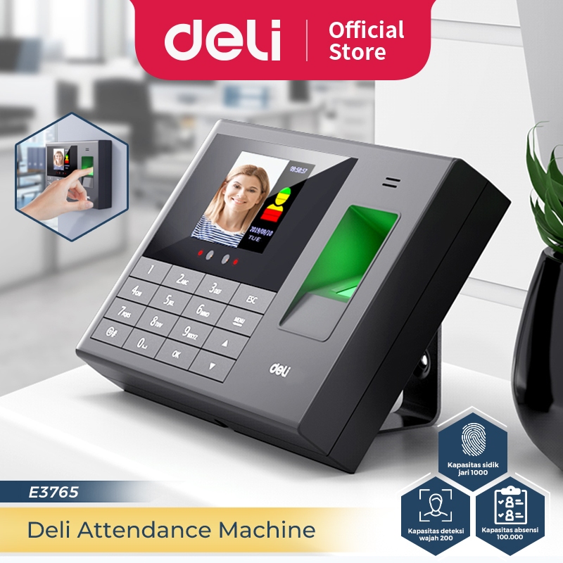 Deli Mesin Absensi Sidik Jari Deteksi Wajah 1000 Sidik Jari 200 Wajah Attendance Machine Bahasa Indonesia E3765