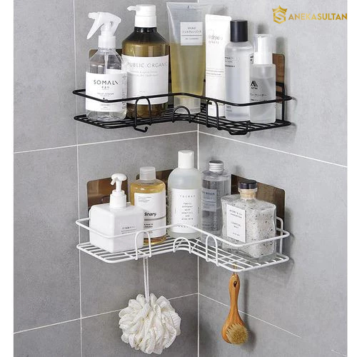 Rak Sudut Kamar Mandi Tempel Dinding Keramik Rak Dapur Besi Serbaguna Tanpa Paku
