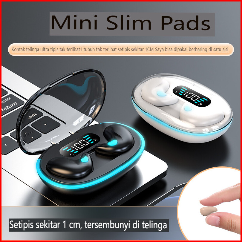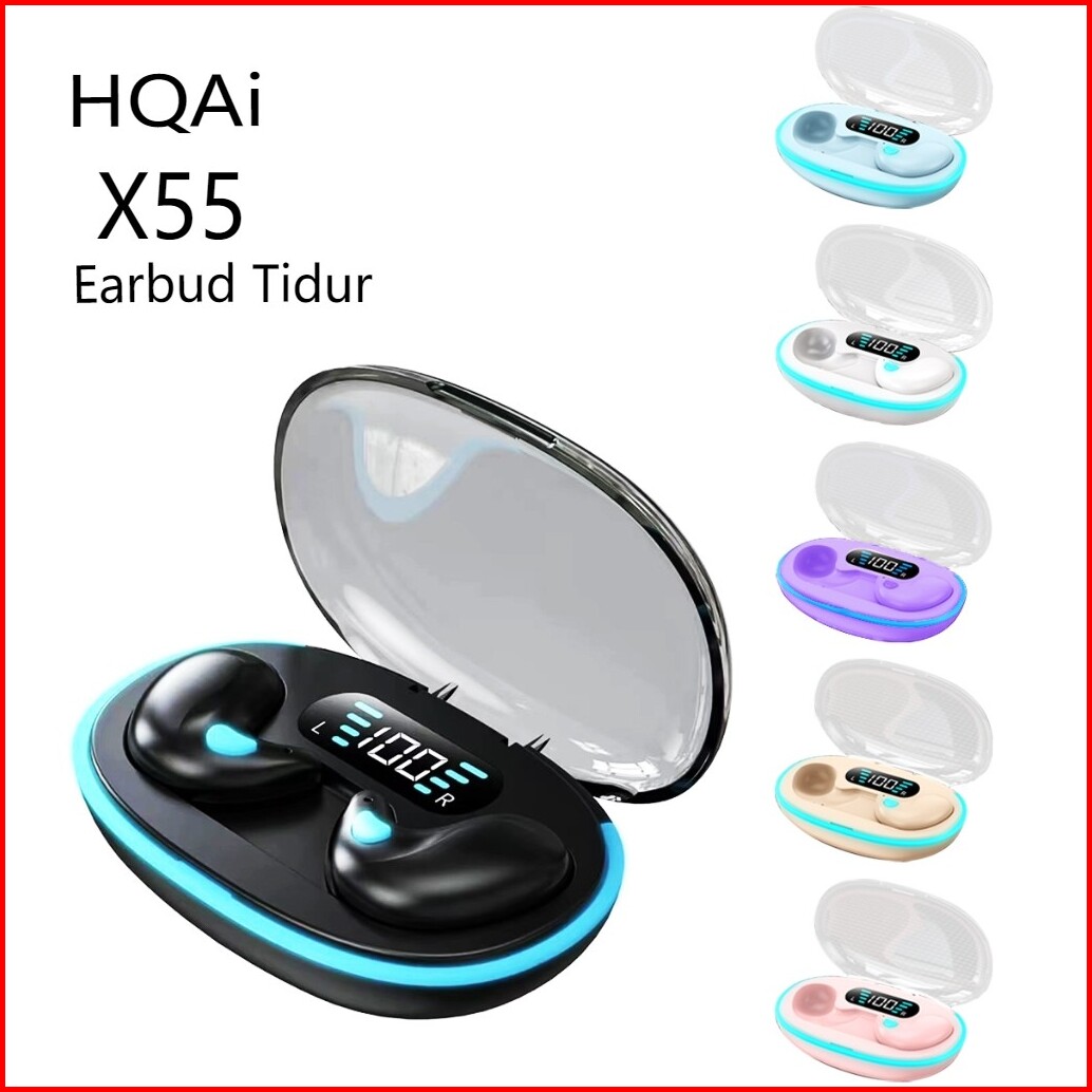 X55 Earbud Tidur Nirkabel Dengan Mikrofon Stereo Hi-fi Built-in Tampilan Led Tombol Kontrol Tombol Headphone Tahan Air H