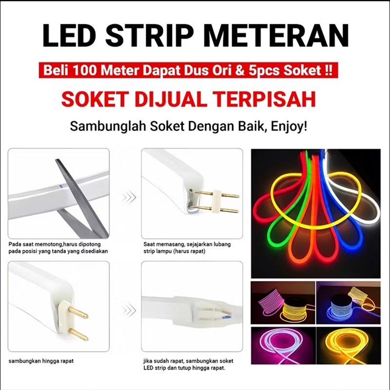 FUYAO LIGHTING Lampu LED Strip Neon Flexible LED Strip Flexible Meteran 220V IP65 Waterproof