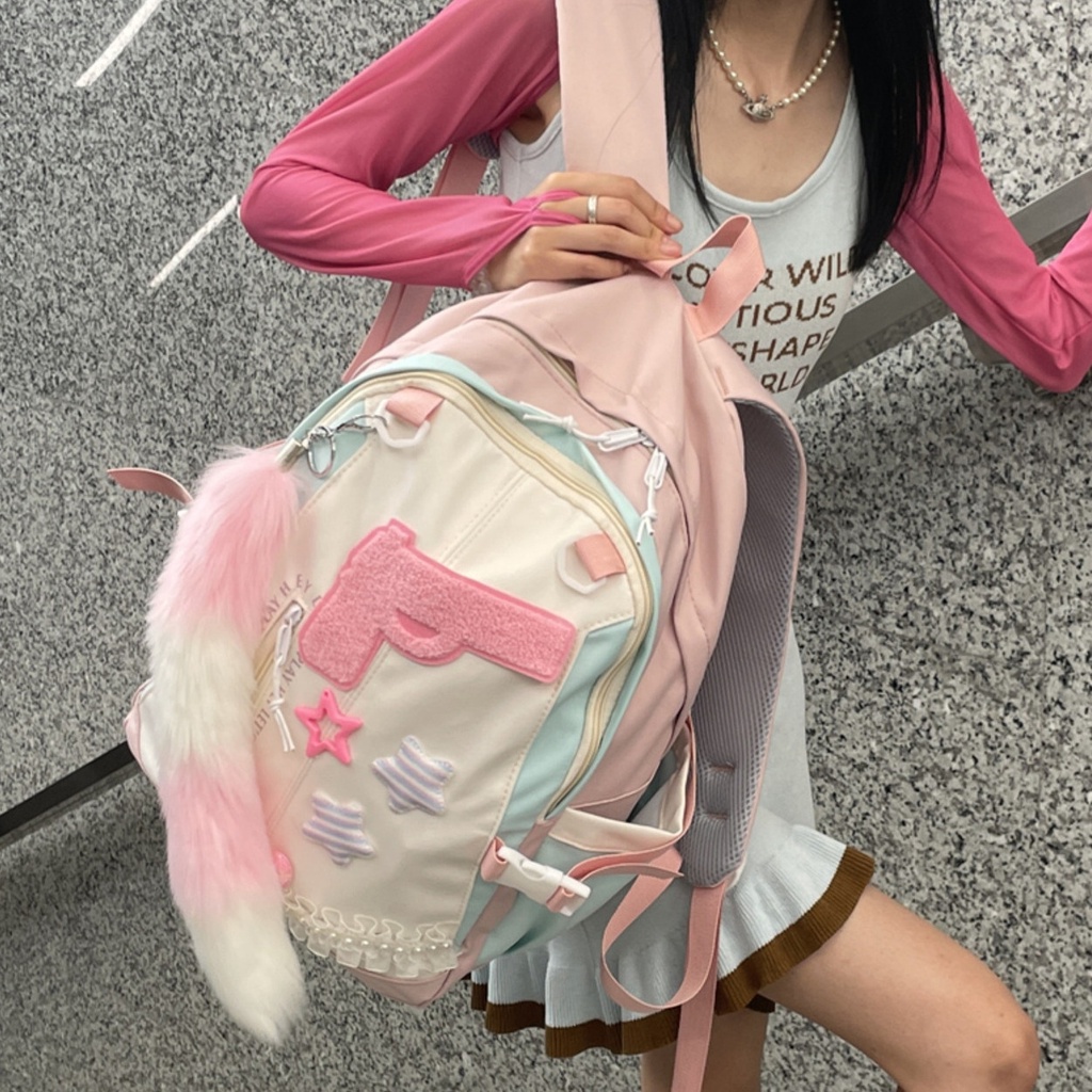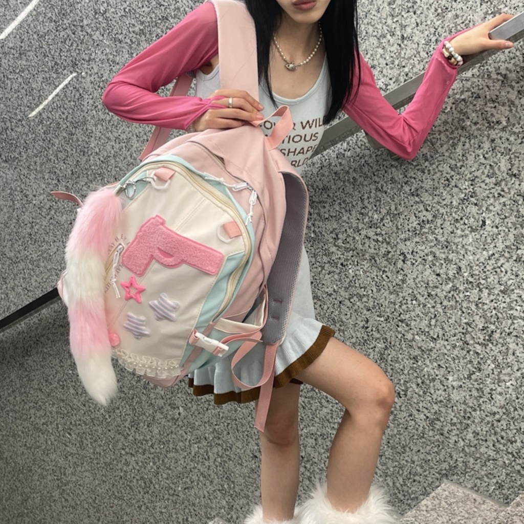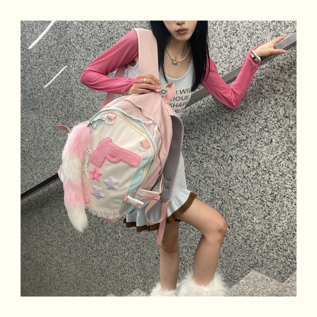 (ready)Tas Sekolah lucu wanita Tas Bahu Kapasitas Besar Merah Muda korea import fashion kuliah tas ransel laptop volume tinggi backpack