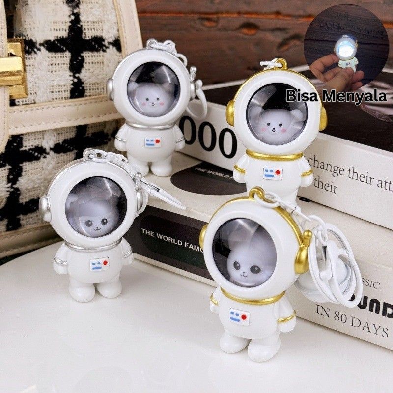 Roket Gantungan Kunci Astronot Lucu Keychain With Night Lamp Multifungsi