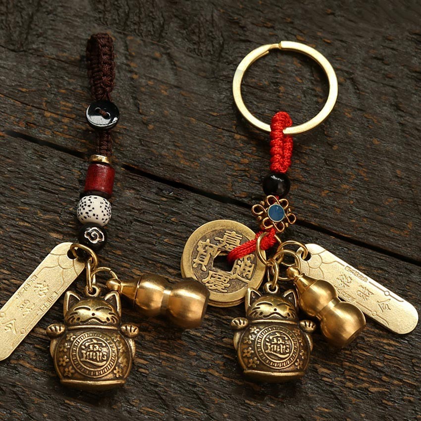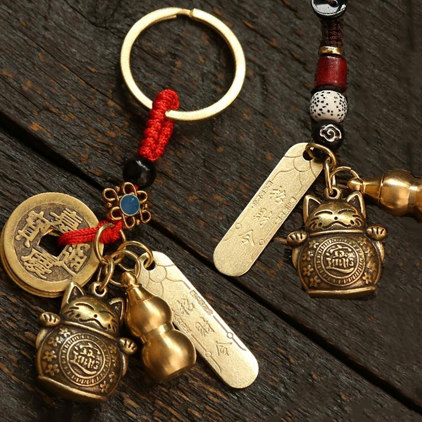 Gantungan Kunci Kuningan Kucing Hoki Coin Lucky Cat Gantungan Kunci Cina gantungan kunci mobil Brass keychain