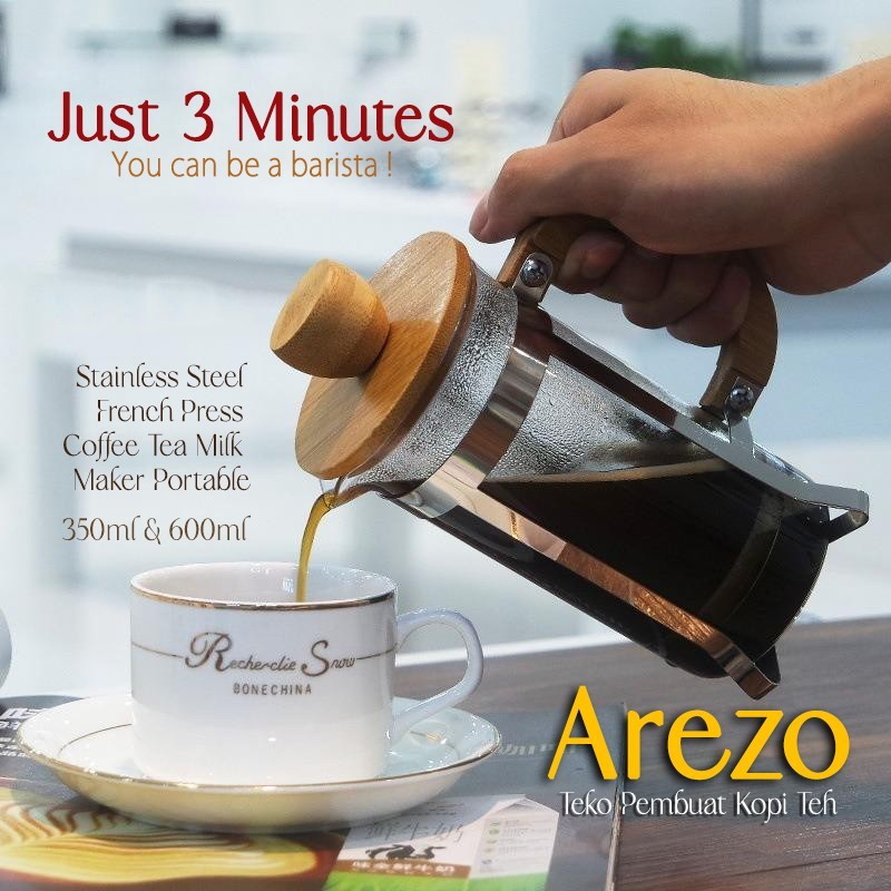 Teko Kaca Seduh Kopi French Press Coffe Maker Teko Seduh Kopi Teh Kaca Press Coffe Maker Teko Set Kaca Pembuat Kopi Arez