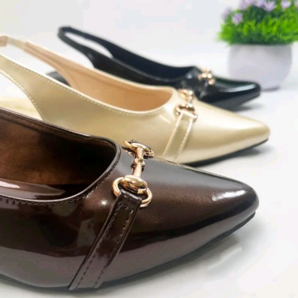 Sandal Wanita High Heels Slop Tali Belakang Hak 3cm - Empuk,Nyaman & Elegan Tersedia Warna Mahogany,Ivory & Hitam | Coco