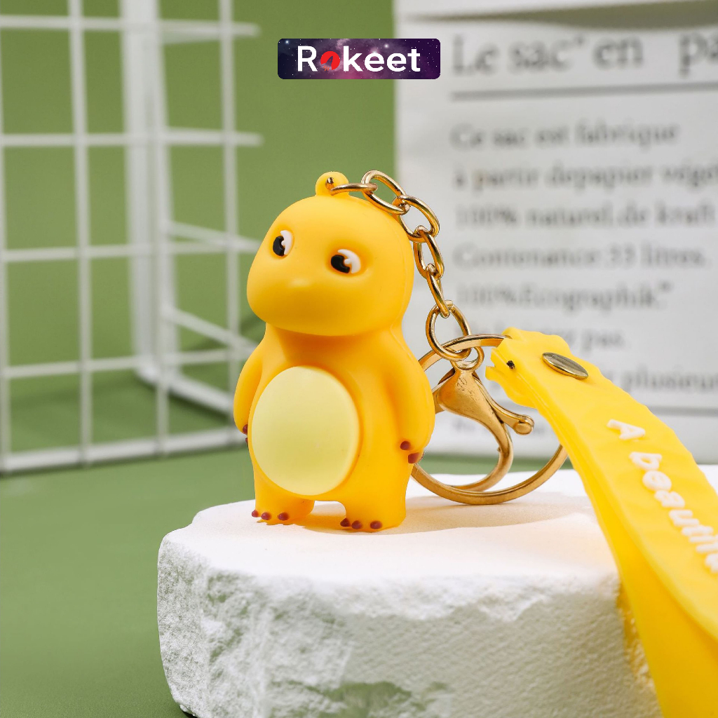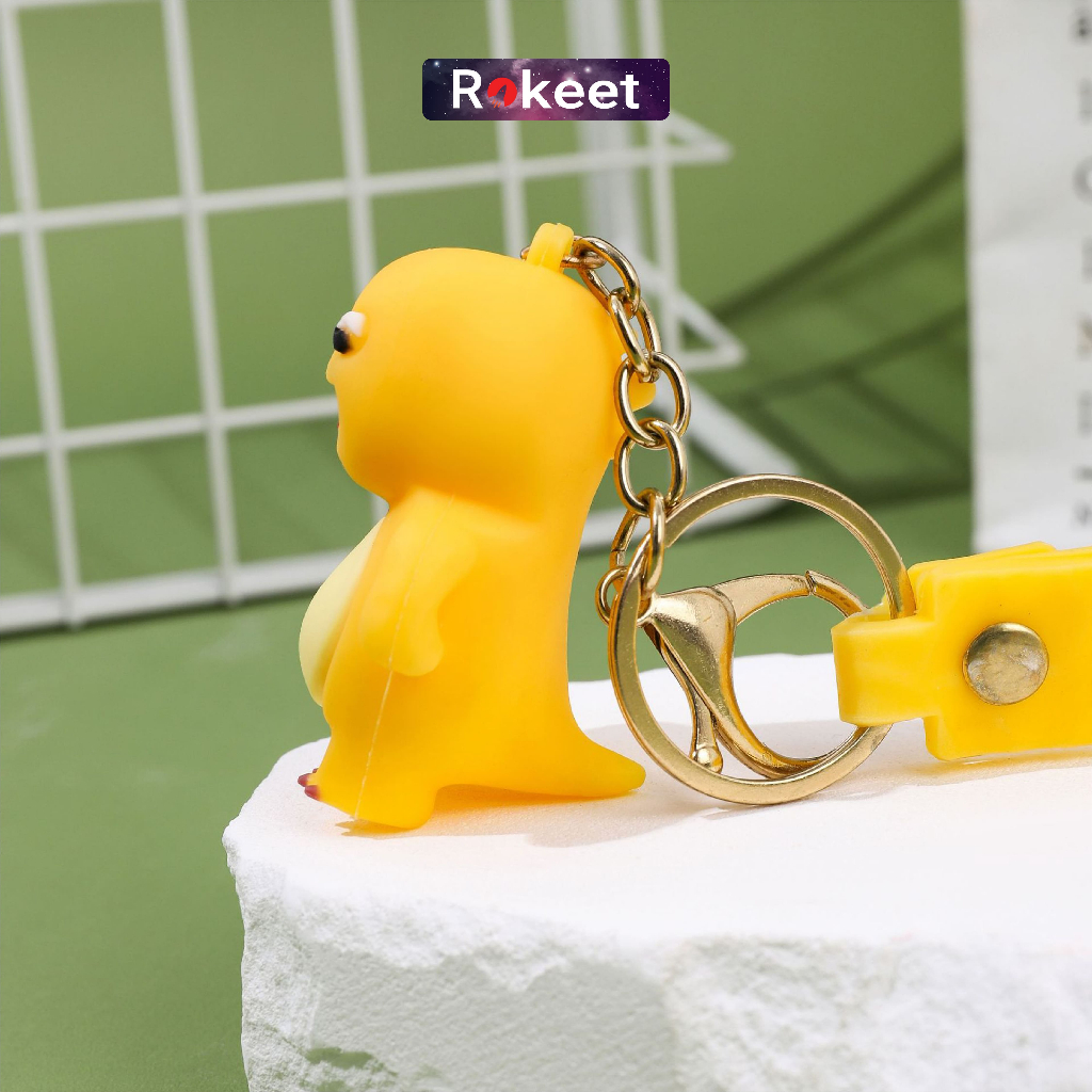Rokeet Gantungan Kunci Keychain Karakter Kartun Dino Kuning Nailong Hiasan Tas Lucu