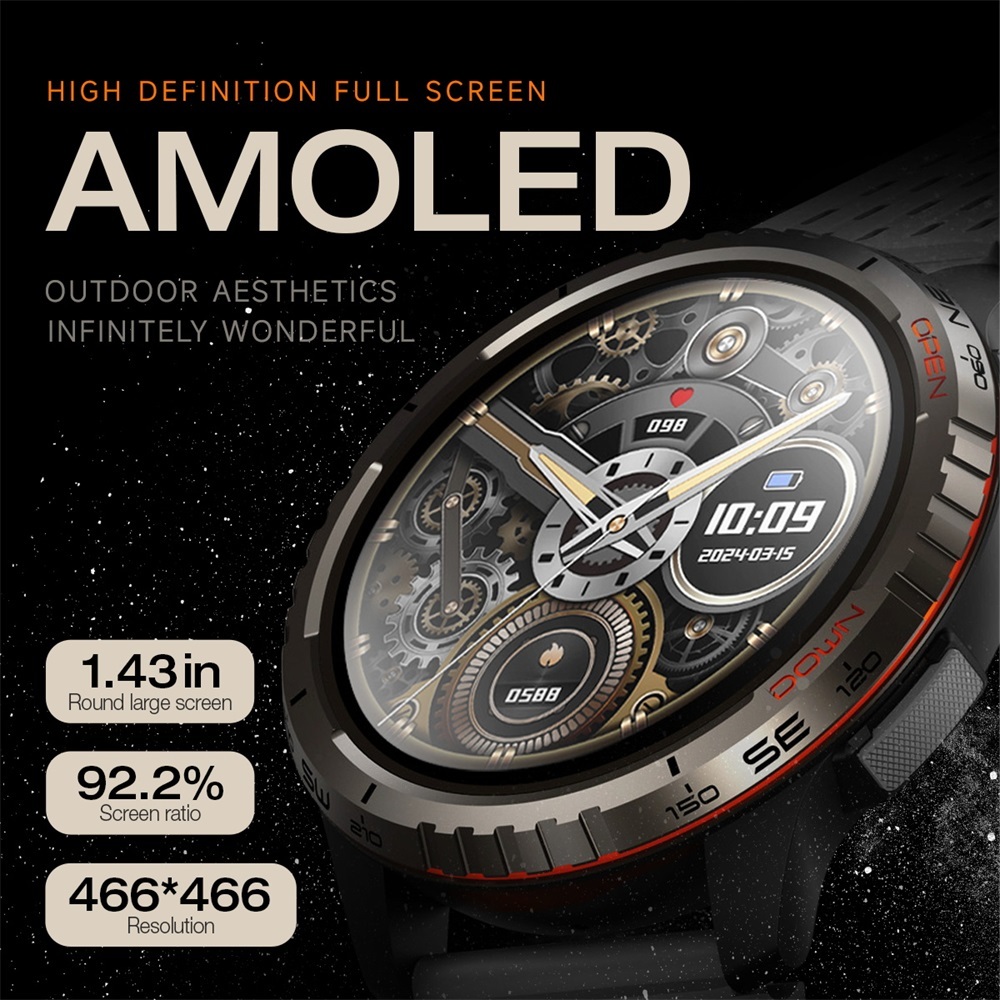 SKMEI B77 Smartwatch GPS Map Support Strava | 1.43 Amoled Touch Screen | 3ATM Waterproof |300mAh Battery Capacity | Comp