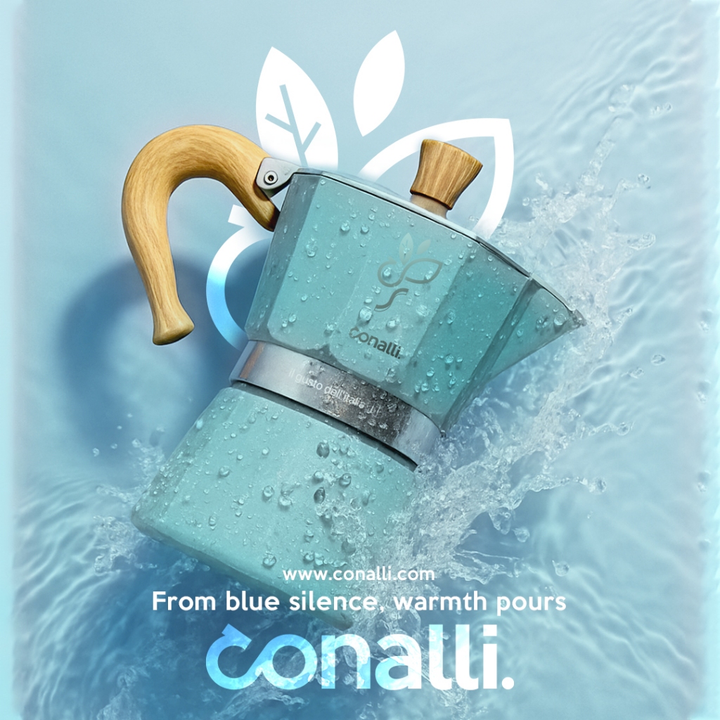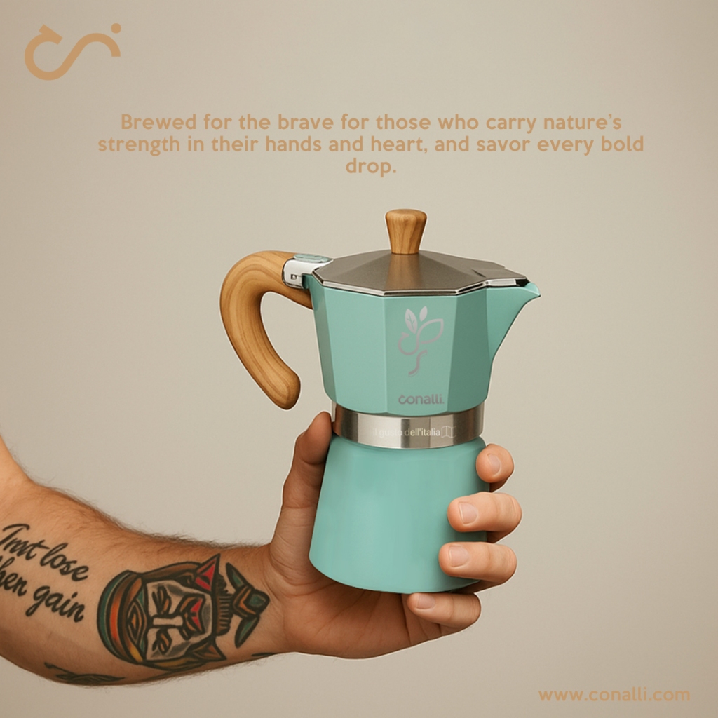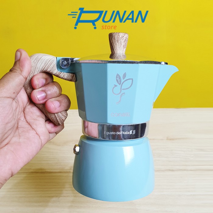 Mokapot 150 ml Conalli - 3 Cup Biru Moka Pot Handle Kayu Wood Coffee Maker Italy - Espresso maker Manual Brew
