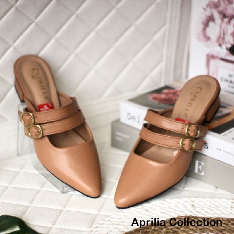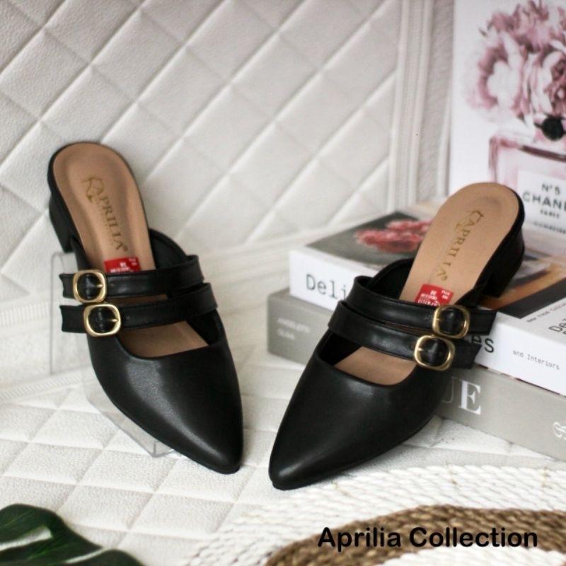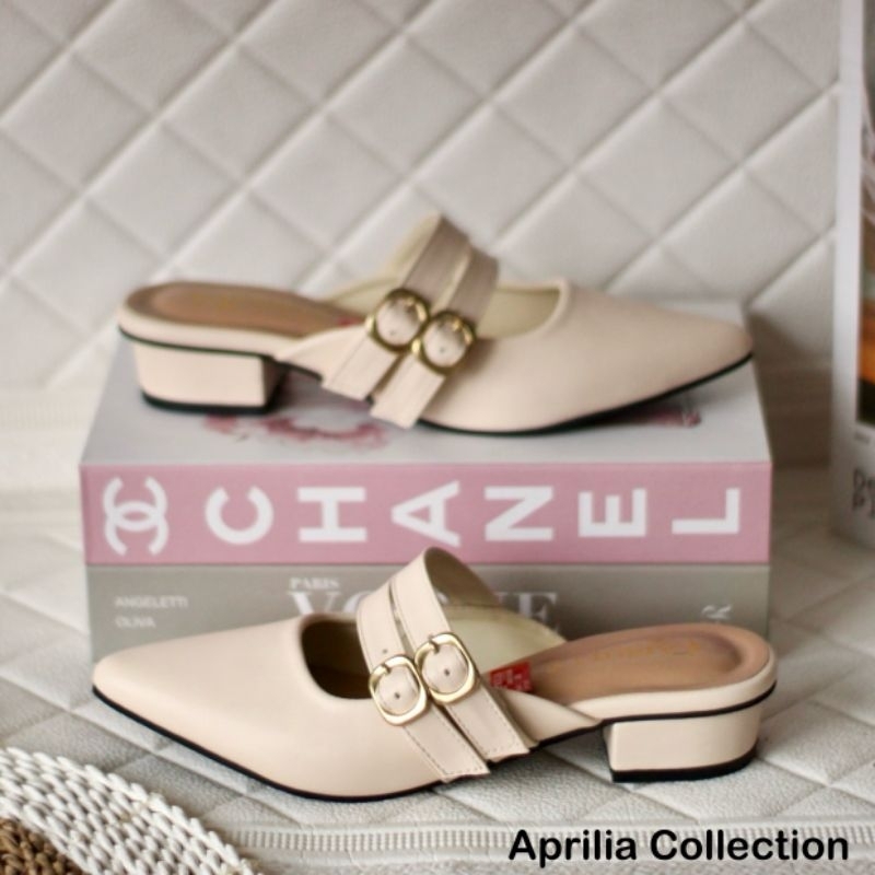 Sandal wanita hak tahu 3cm-sandal mules slip on kekinian-sandal slop pesta wanita