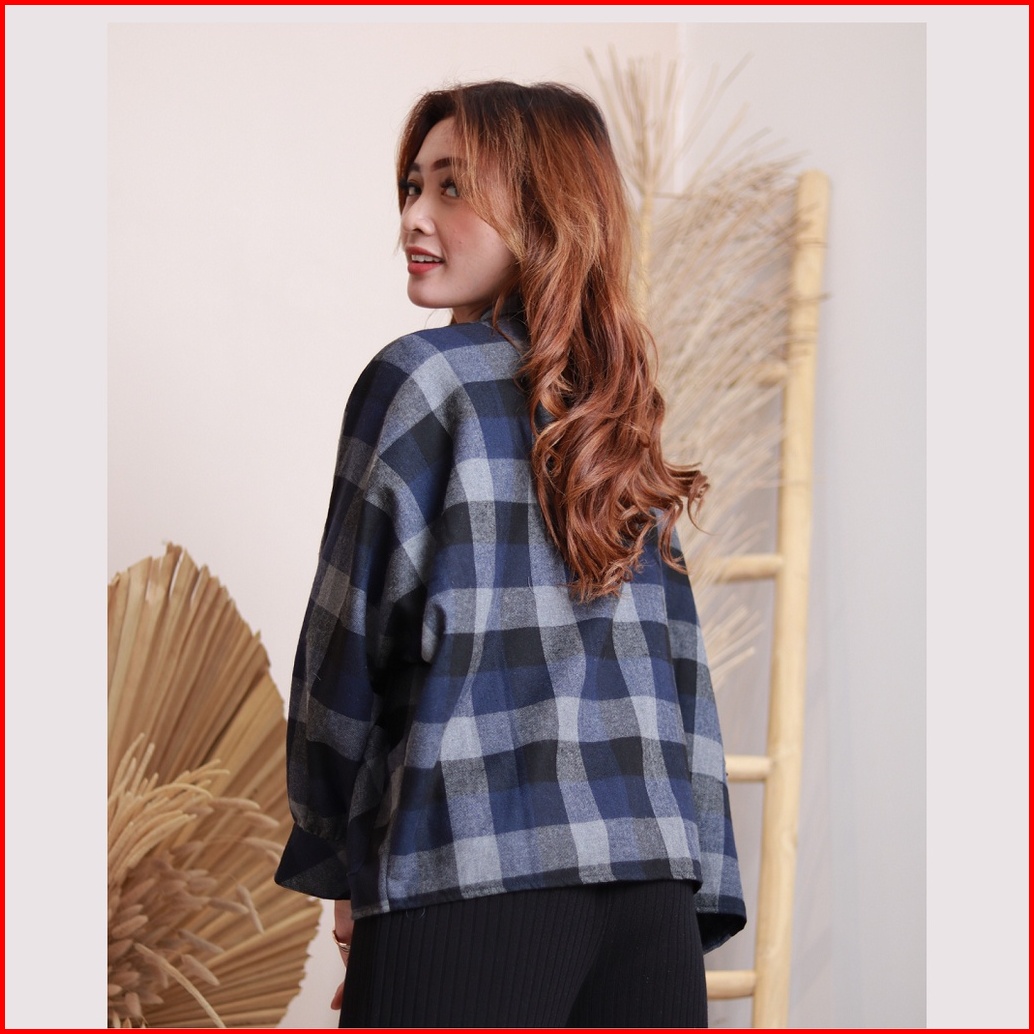 Elzanteri Baju Wanita Cardigan Outer Flanel Batwing Wanita