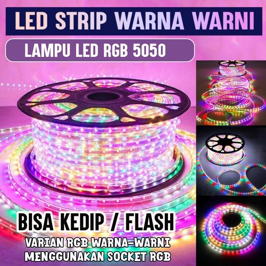 PAKET 10 / 11 / 12 / 13 / 14 / 15 / 16 / 17 / 18 / 19 / 20 METER 10M 12M 15M LAMPU LED STRIP 5050 PLUS SOCKET AC 220V /
