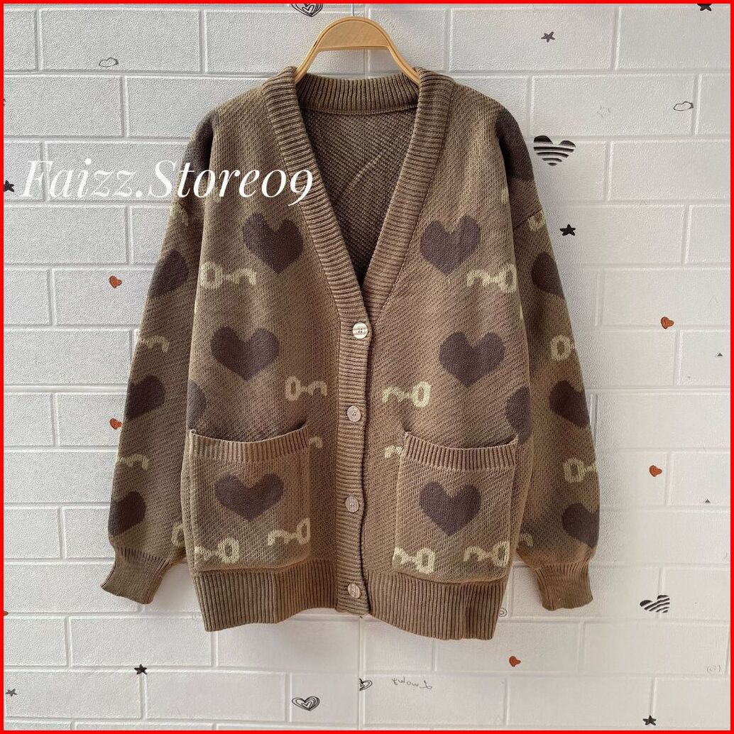 Cardigan Rajut Kancing Valentine Motif Love Kunci Oversize Outer Wanita