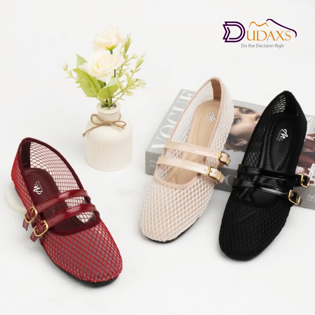 Sepatu Flatshoes Wanita KETTY Jaring extra soft NEW DESAIN 2 Gesper