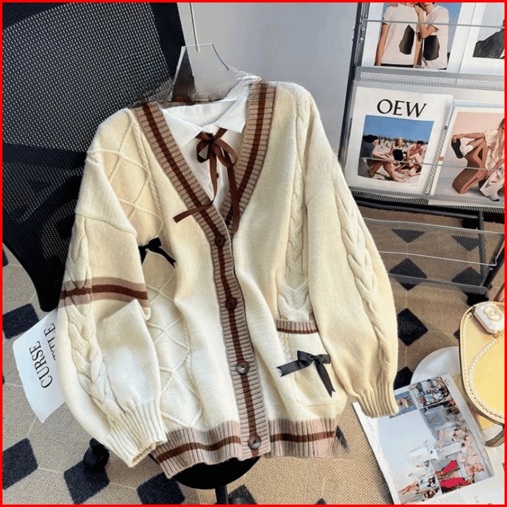 Youngmiss Cardigan Ribbon Pita Coquette Atasan Wanita Lengan Panjang Longsleeve Baju Oversize Bes