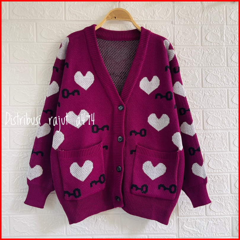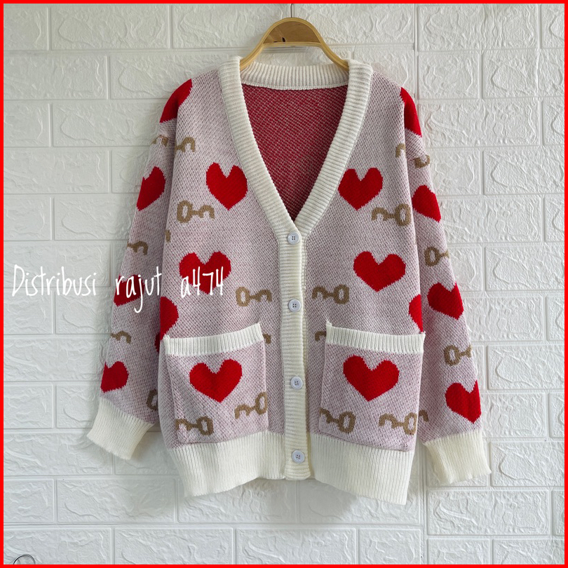 Cardigan Rajut Kancing Valentine Motif Love Kunci Oversize Outer Wanita