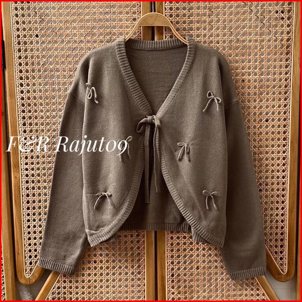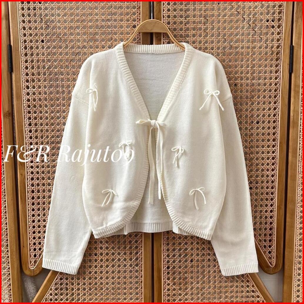 F R Eliza Outfit Cardigan Crop Motif Tali Pita Atasan Rajut Wanita Outer Simple Premium Terbaru Korean Style