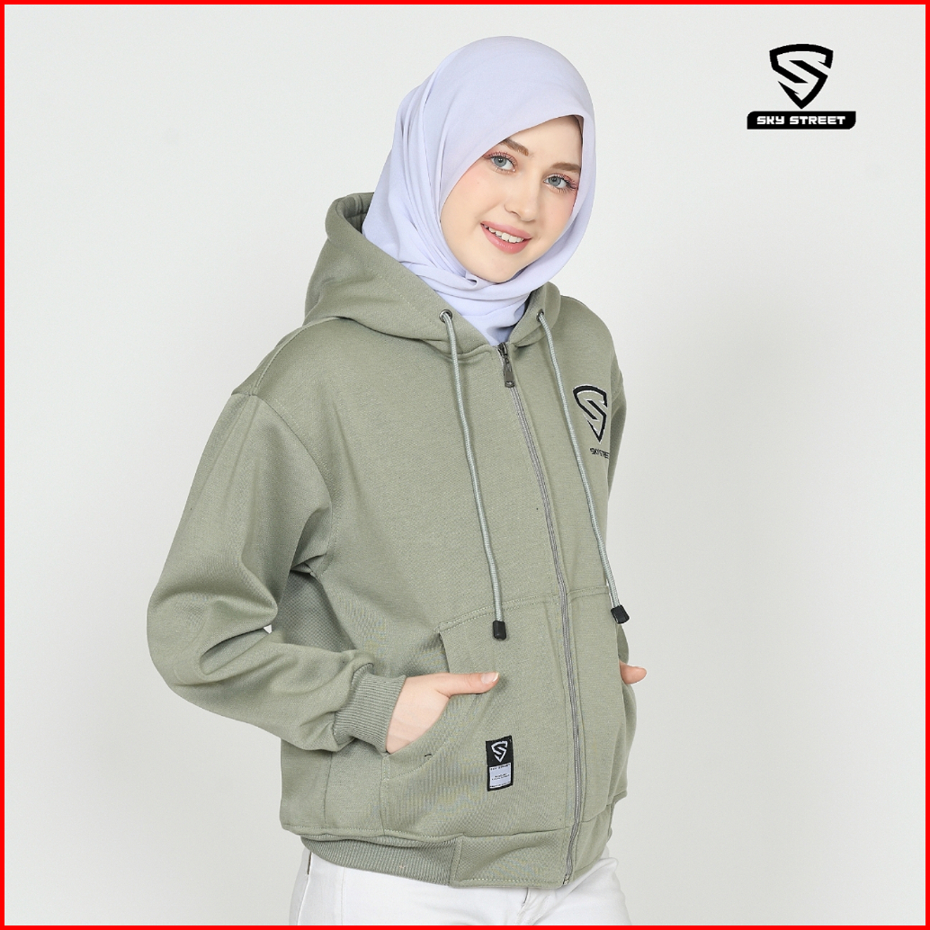 Sky Street Hoodie Sweater Jacket Zipper Resleting Logo Bordir 280 Gms Tebal Lembut Pria Wanita Bahan Fleece Distr